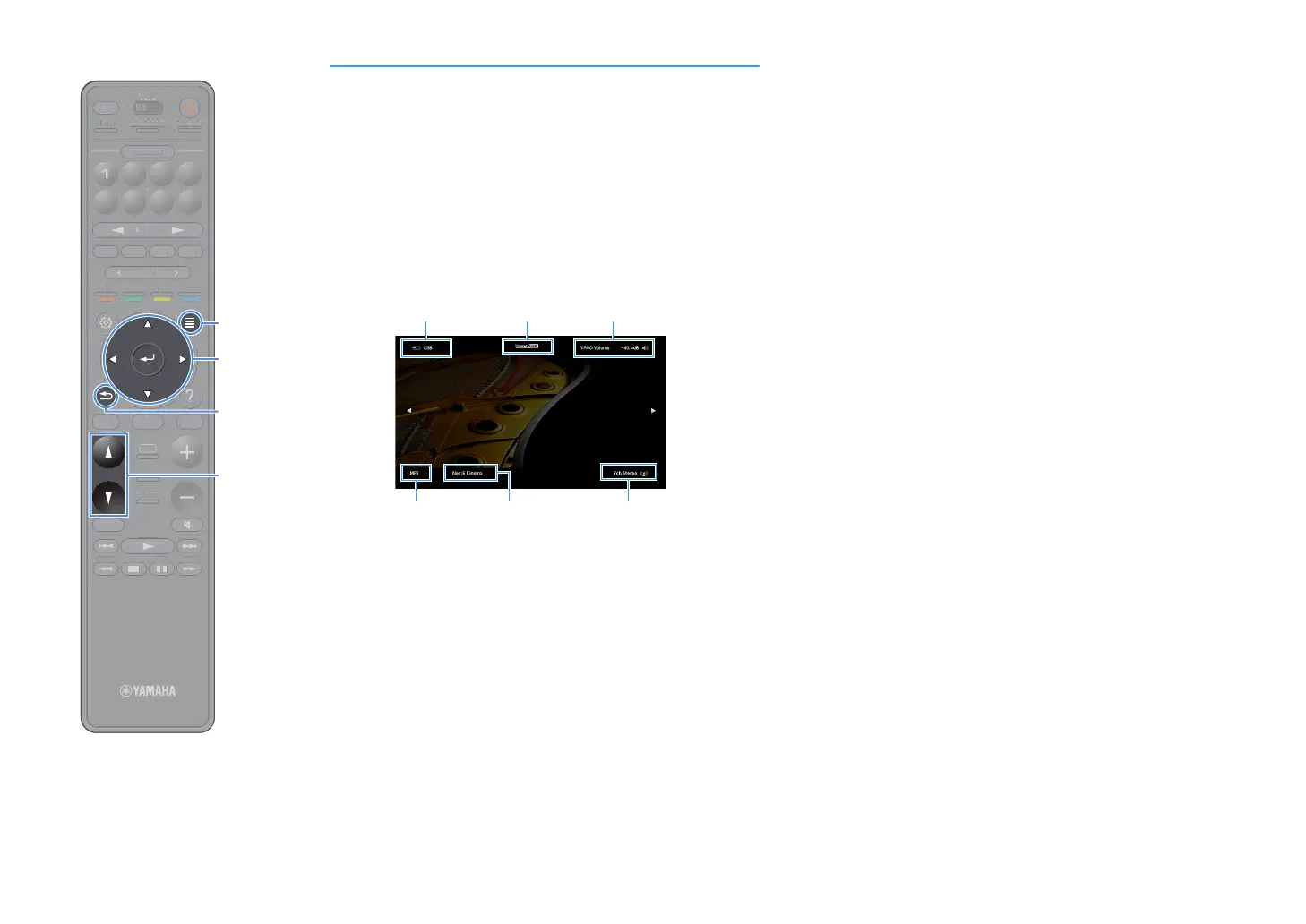 When SURROUND:AI is enabled, the status information for SURROUND:AI is also