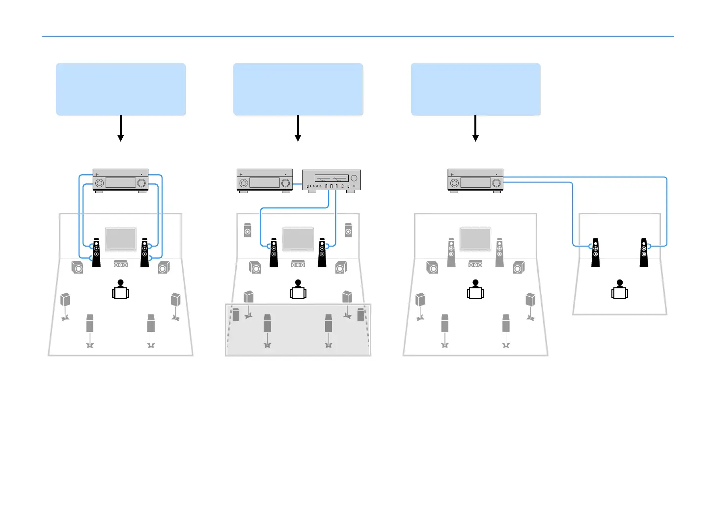 Bi-amp connection Power-amp channel expansion Multi-zone configuration