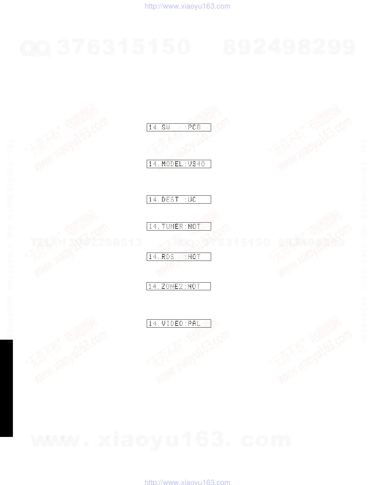 This menu is used to switch the function settings on P.C.B.