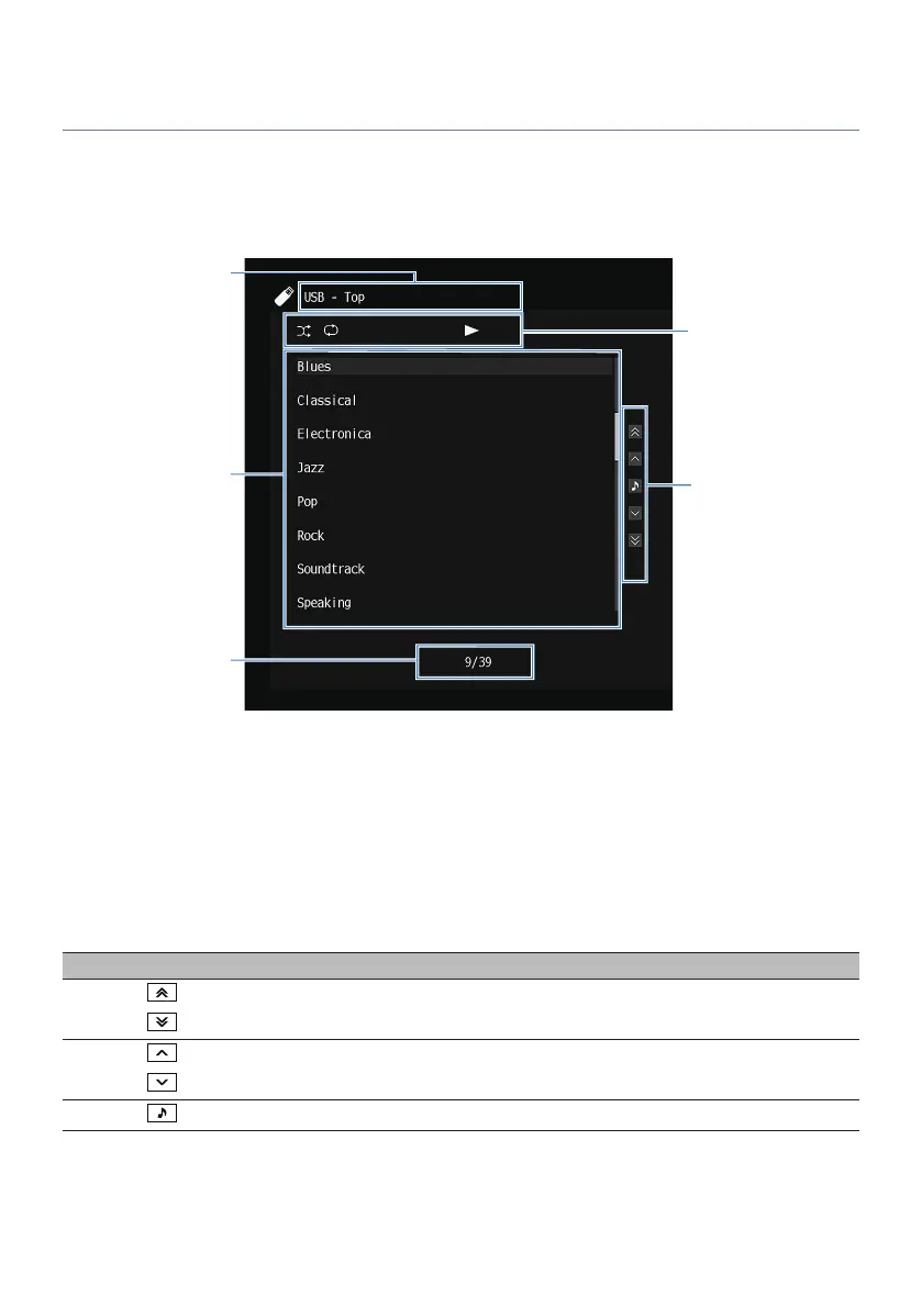 Displays the list of contents. Select an item and press ENTER to confirm the selection.