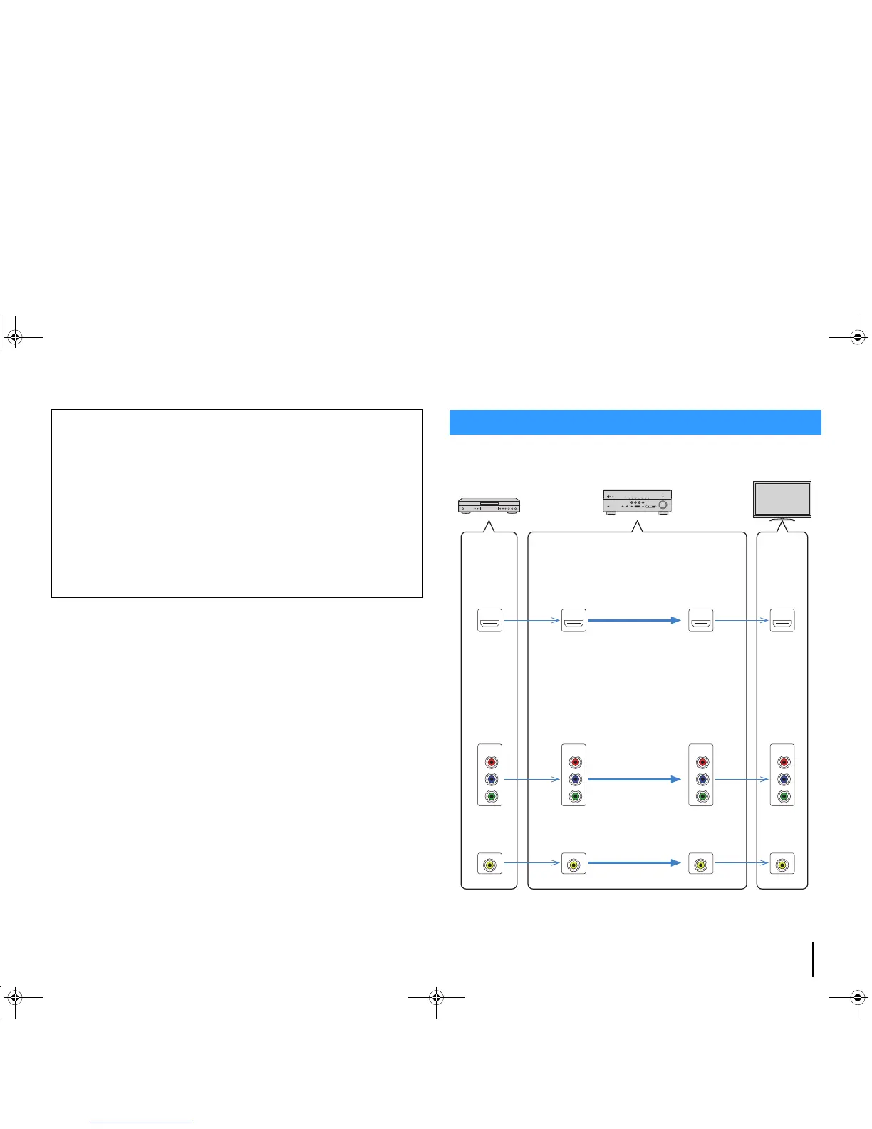 Video signals input from a video device to the unit are output to a TV as shown below.