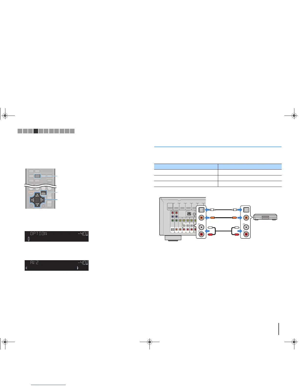 If you select “AV 2” as the input source by pressing AV 2, the video/audio played back