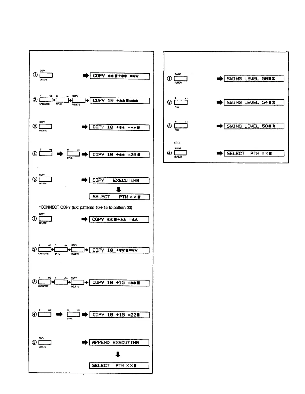 Yamaha RX15 - Pattern Copy Reference; CONNECT COPY Reference; Swing Reference