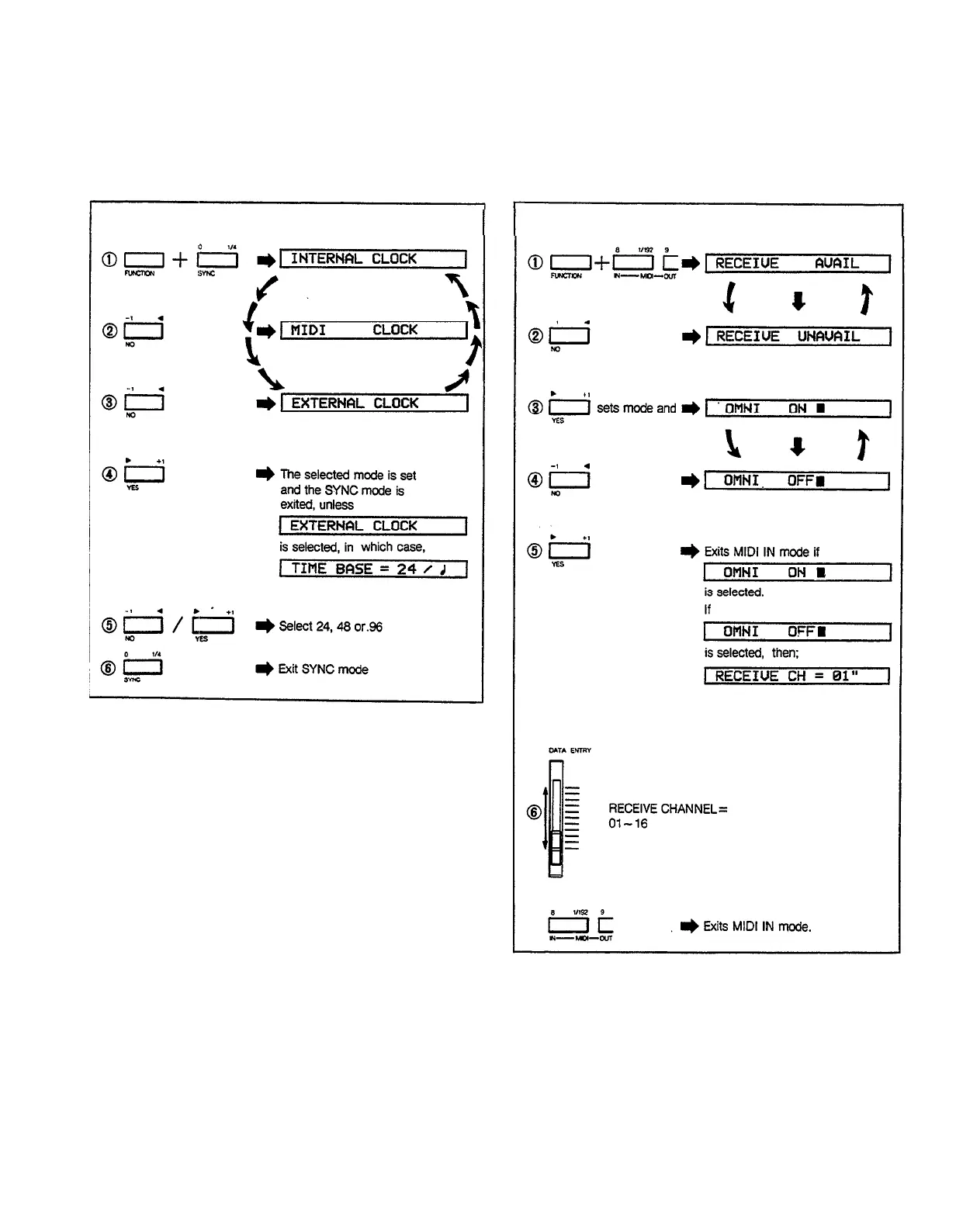 Yamaha RX15 - Load Data from Cassette Reference; MIDI FUNCTIONS REFERENCE; Sync Mode Selection Reference; Midi Reception Parameters Reference