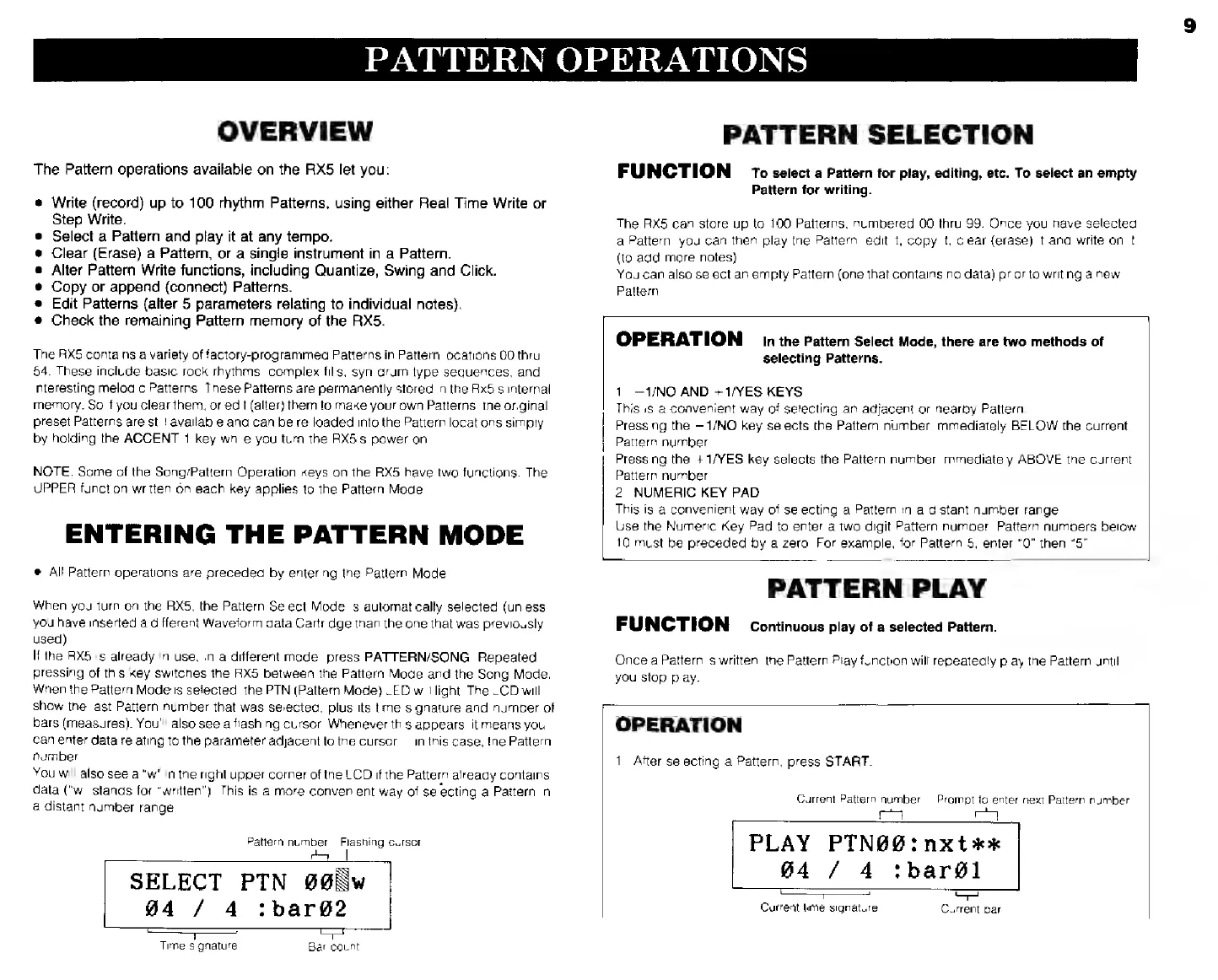 Yamaha RX5 - Pattern Operations; Pattern Selection