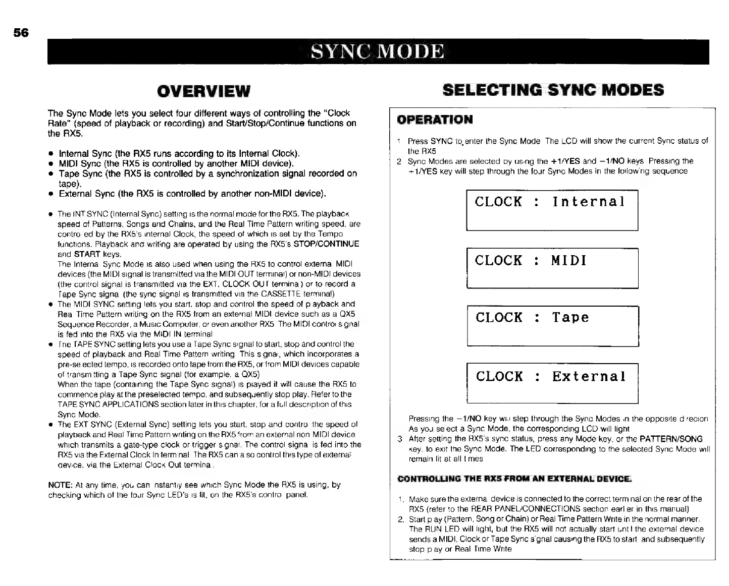 Yamaha RX5 - Sync Mode; Overview; Selecting Sync Modes; Tape Sync Applications