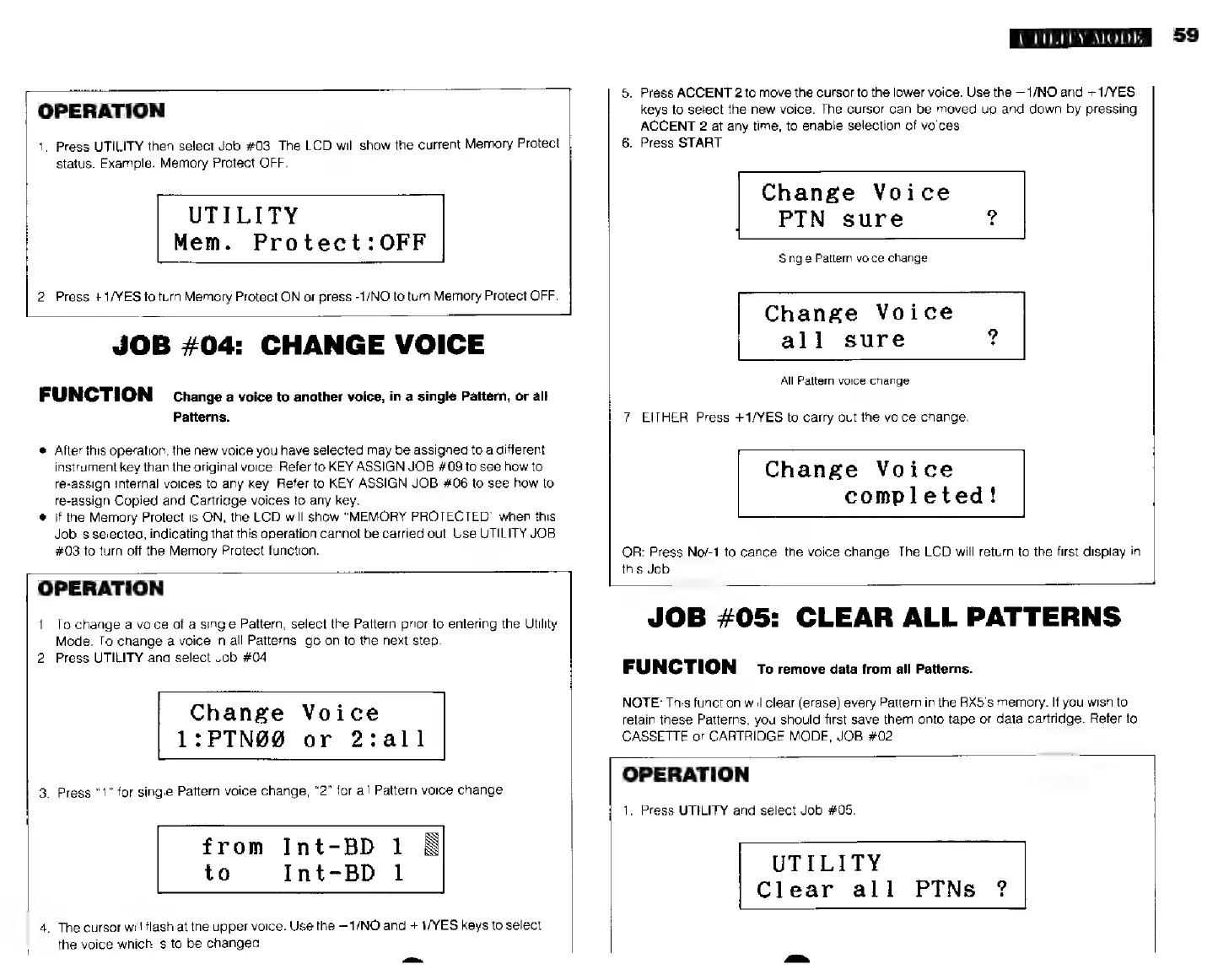Yamaha RX5 - Job 404: Change Voice; Job #05; Clear All Patterns
