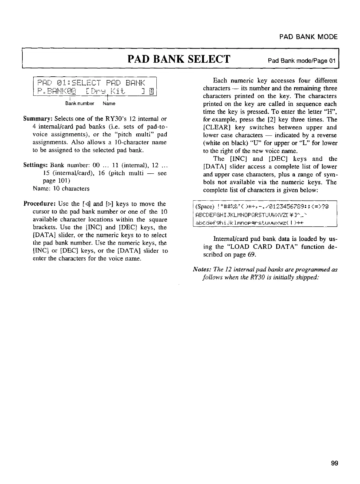 Yamaha RY-30 - Index