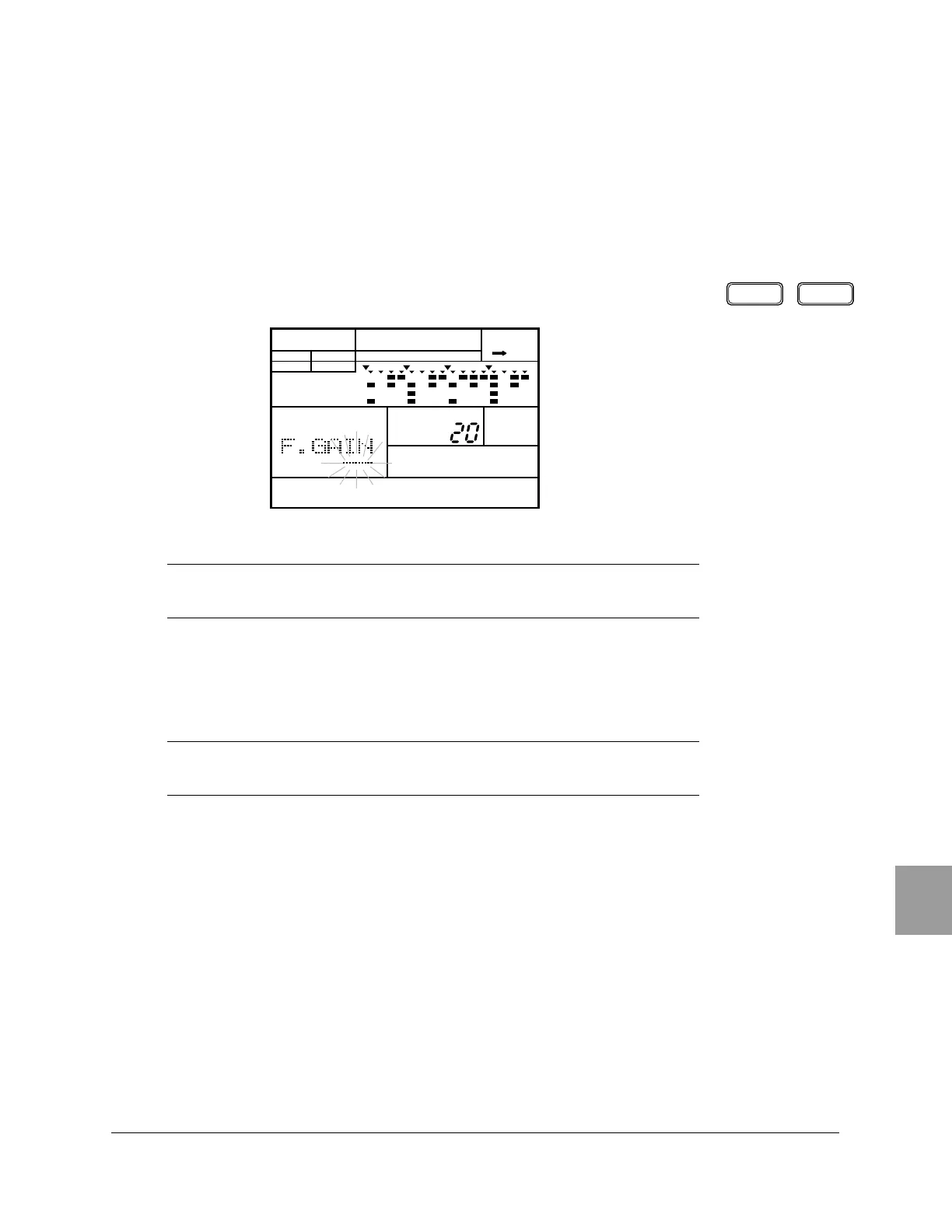 [ PAGE– ] button. The current level flashes under the “F.GAIN” prompt.