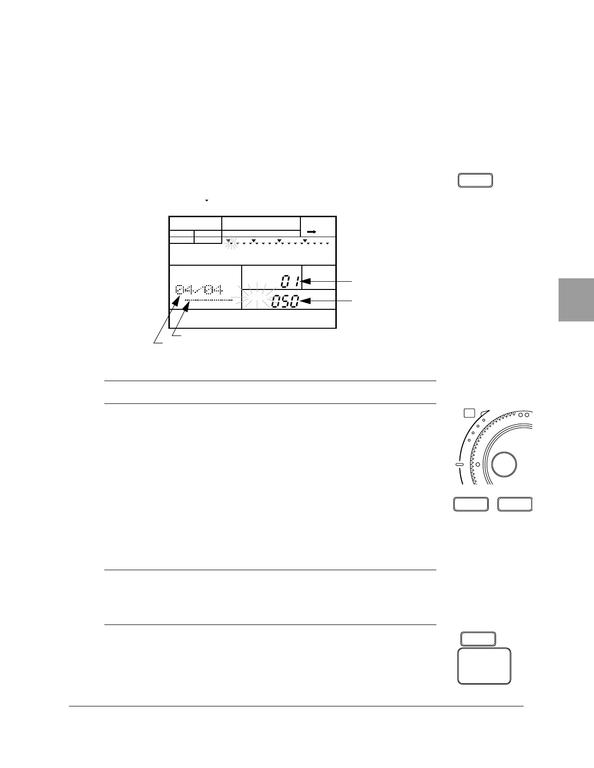 Select a pattern from “050” to “099” to record into by rotating the Jog Dial