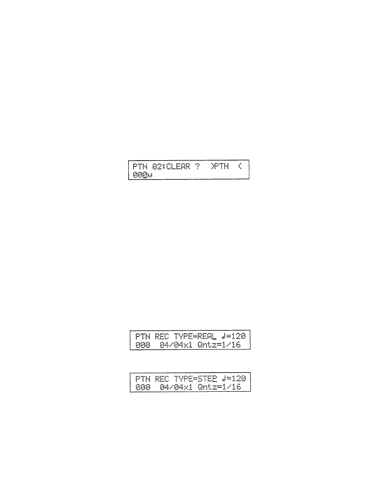 After stopping the pattern press the [PAGE+] key once to call the CLEAR