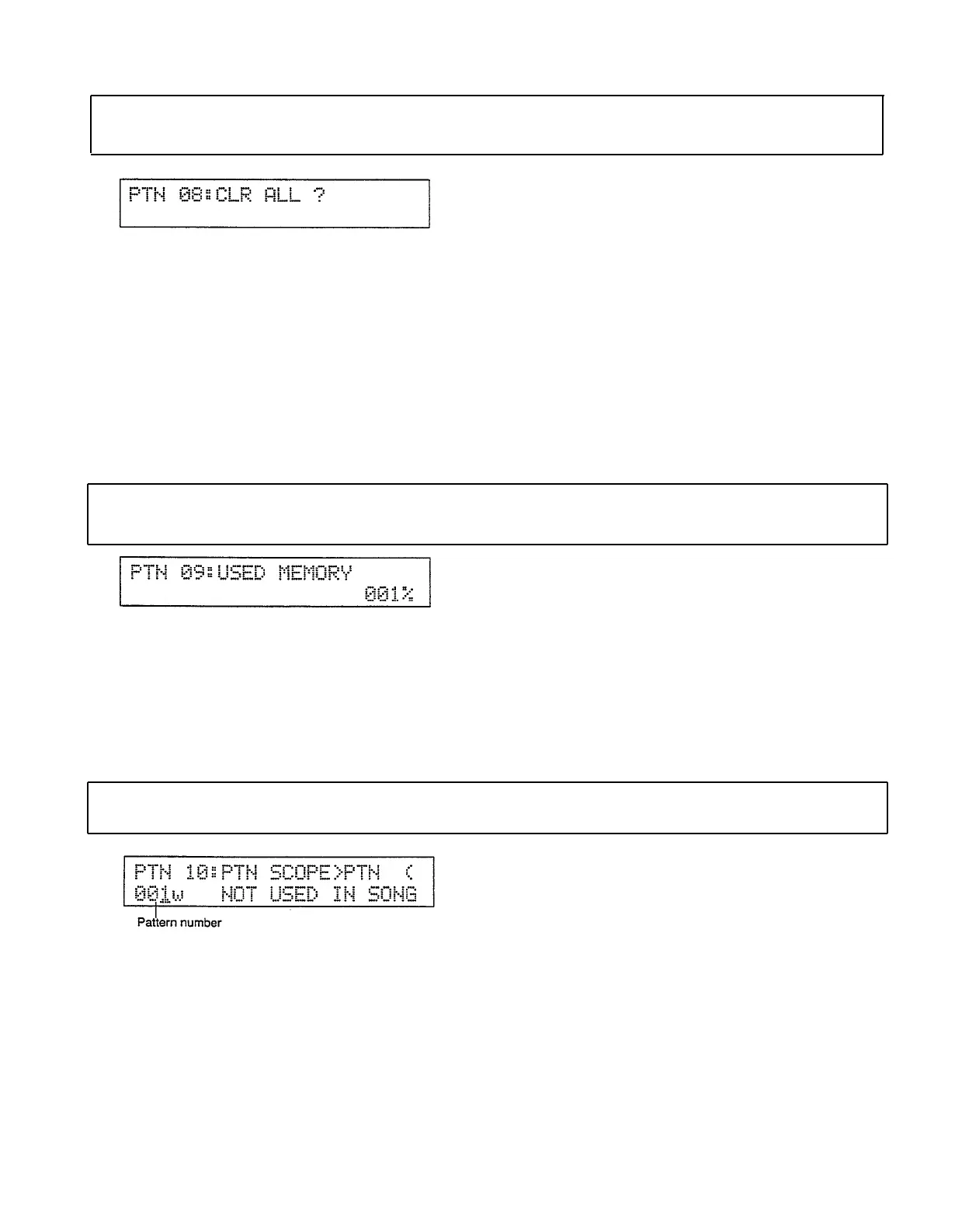 Notes: This function wipes out all 100 user patterns