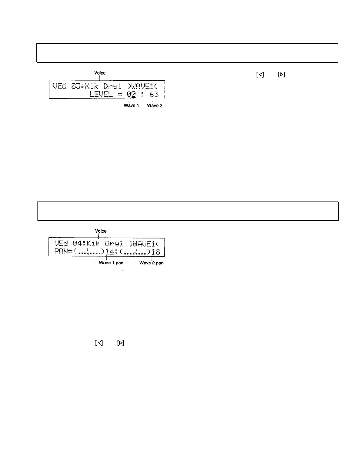 cursor to the voice name, wave 1 level, or wave