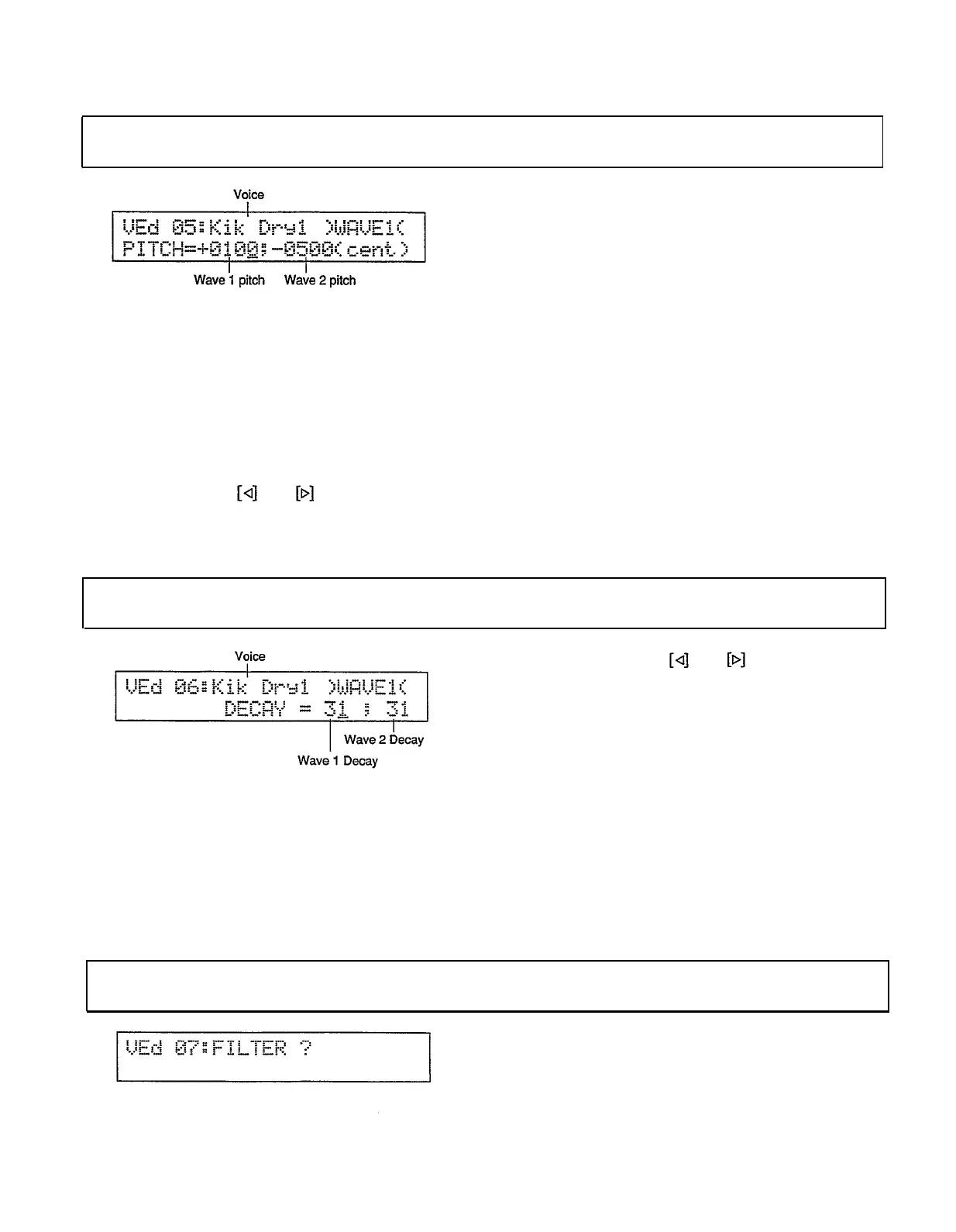 cursor to the voice name, wave 1 decay, or wave