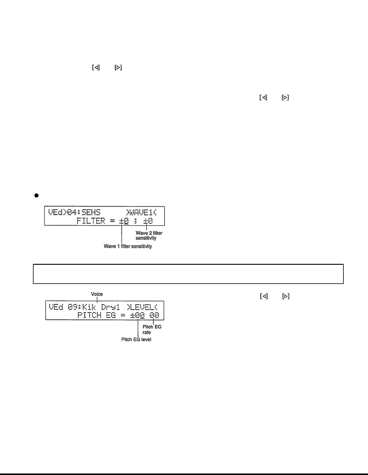 cursor to the voice name, pitch EG level, or pitch