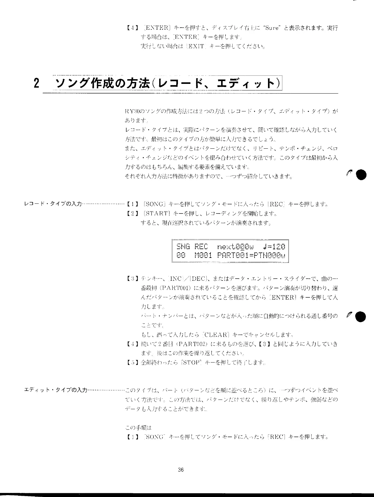 Yamaha RY30 - Song Creation: Record and Edit Methods