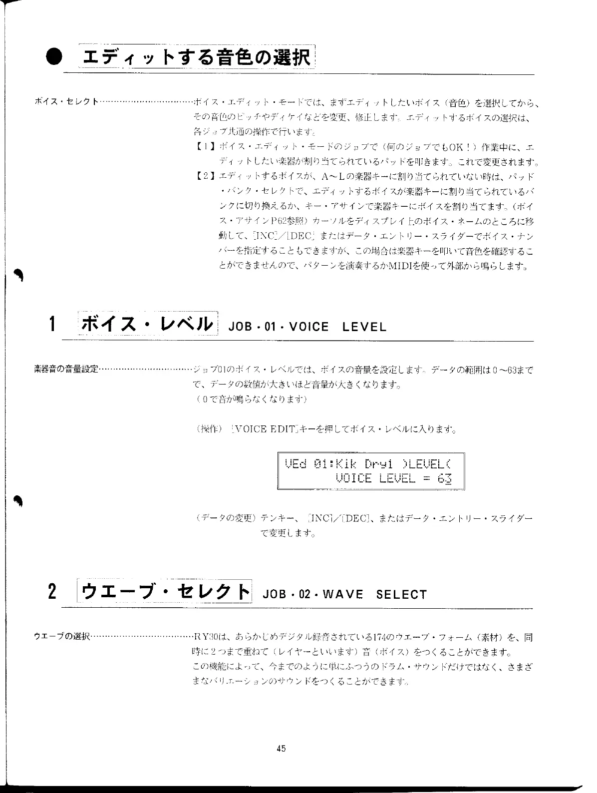 Yamaha RY30 - Selecting a Voice for Editing; Adjusting Voice Level; Selecting and Layering Waves