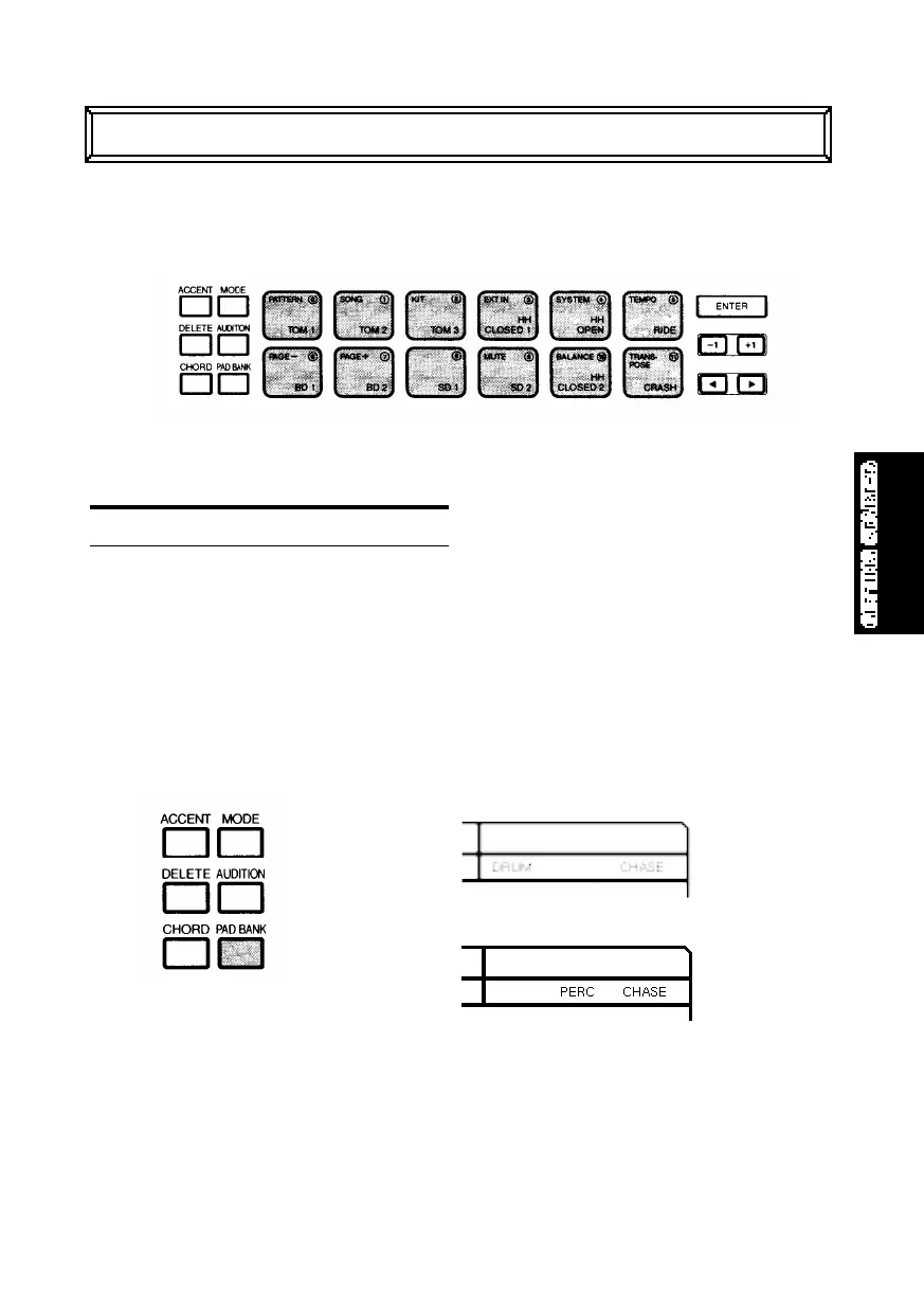 Percussion Pad Bank) will appear in the LCD screen as you switch back and
