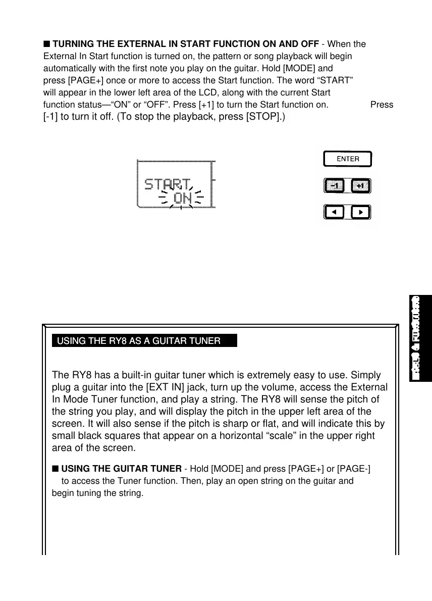 The RY8 has a built-in guitar tuner which is extremely easy to use. Simply