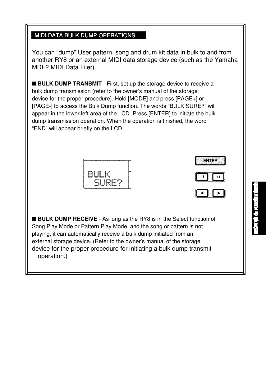 ■ BULK DUMP RECEIVE - As long as the RY8 is in the Select function of