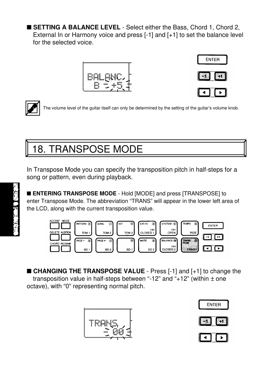 ■ ENTERING TRANSPOSE MODE - Hold [MODE] and press [TRANSPOSE] to