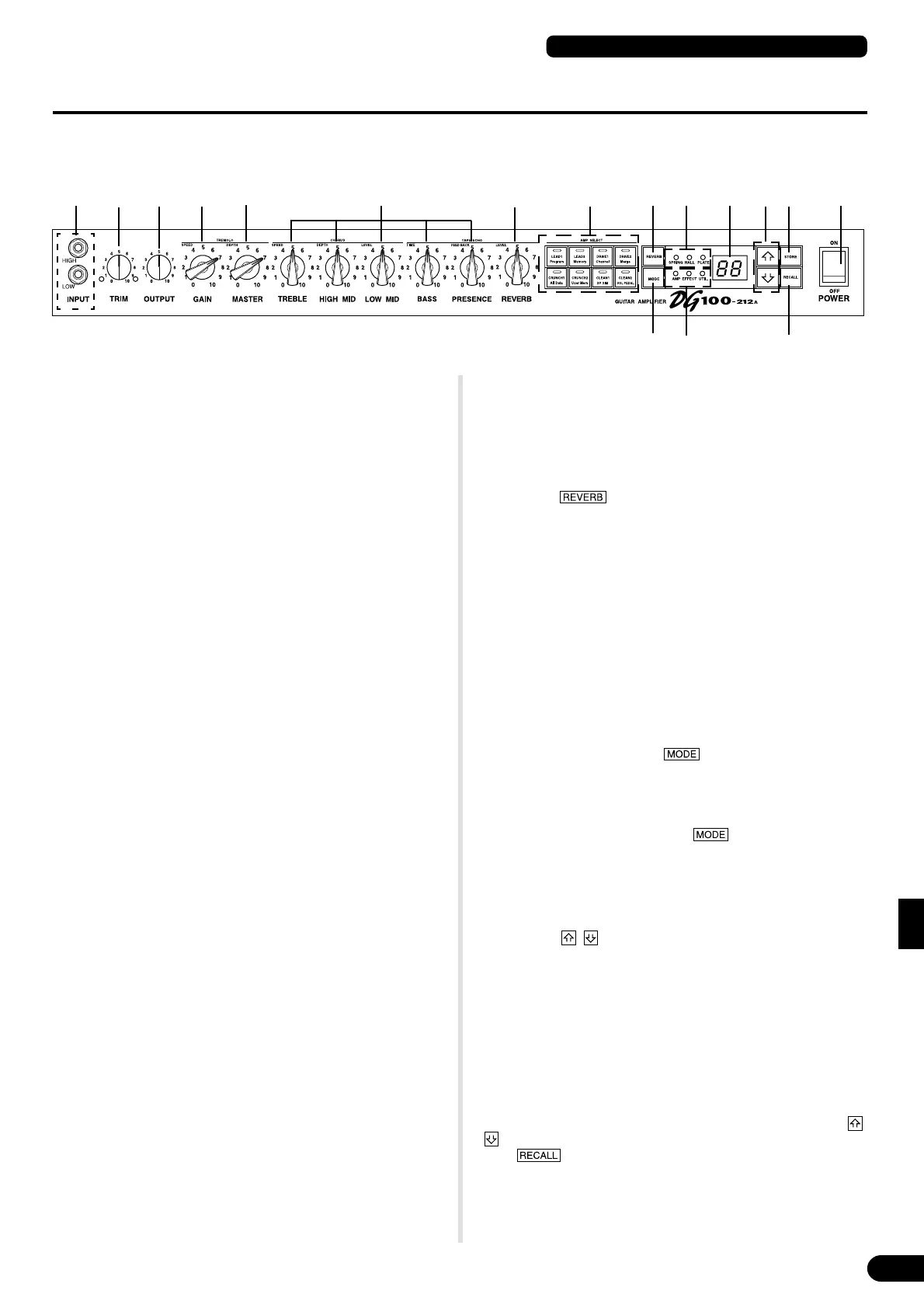 !0 Indicador del tipo de reverberación (SPRING, HALL,