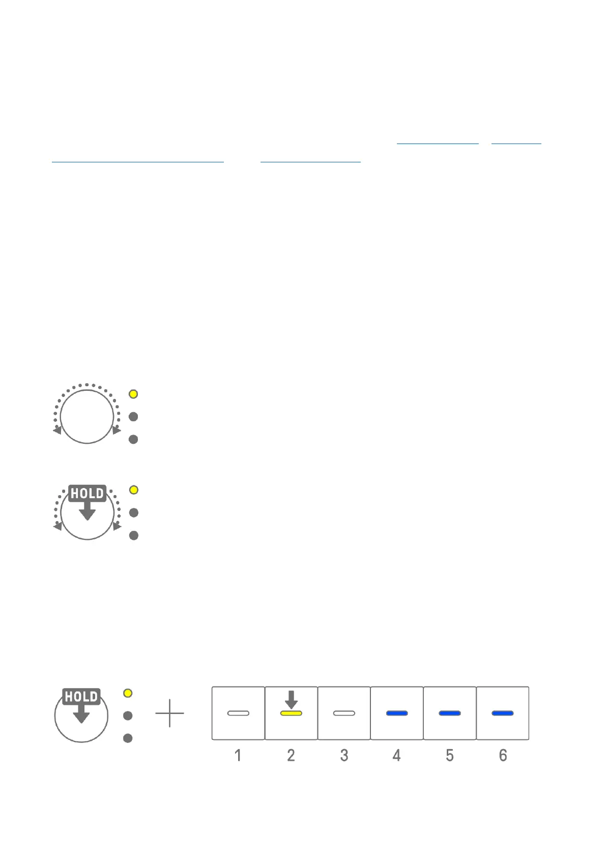 The LED lamp will flash in yellow for patterns 1–3, and in cyan blue for patterns 4–6.