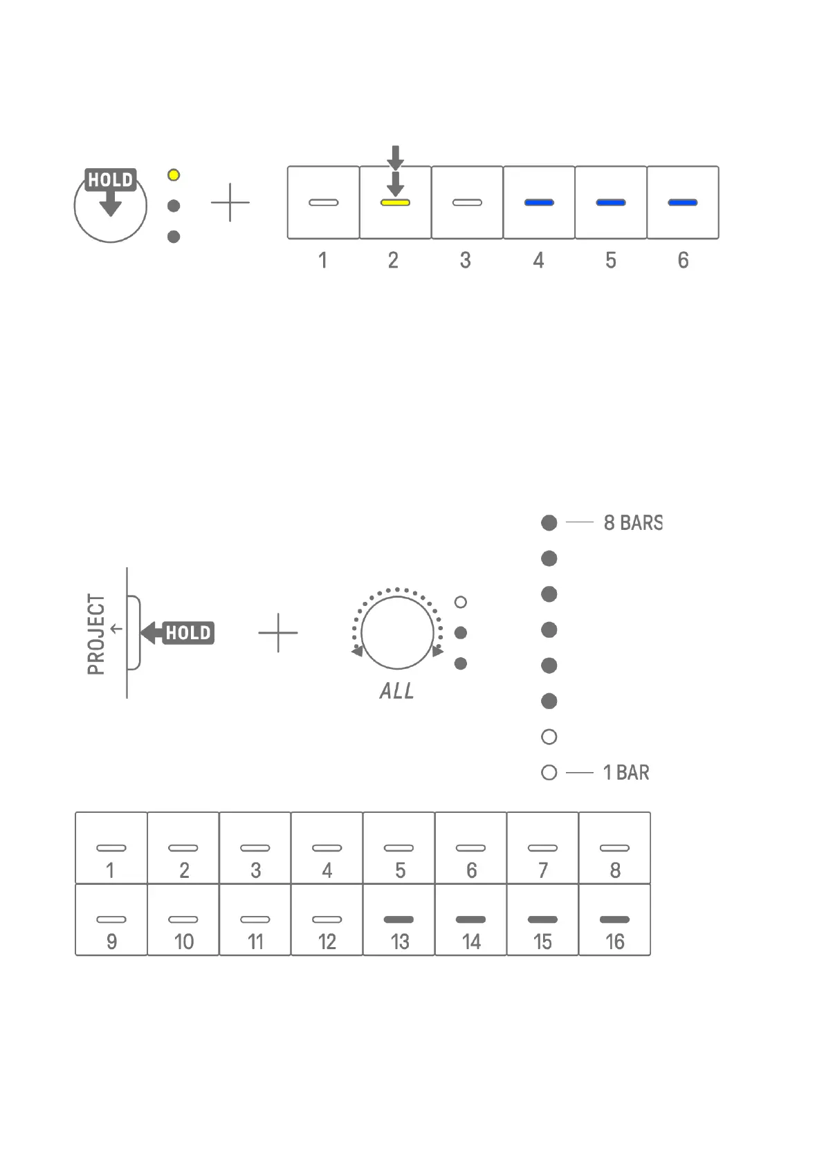 Hold down the [PROJECT↑] button and turn the [ALL] knob to change the number of Launch