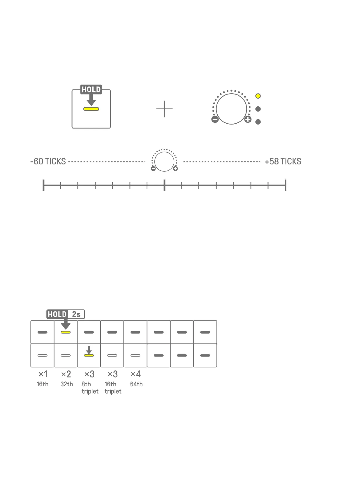 Rhythmic timing can be adjusted in a range from −60 ticks to +58 ticks.
