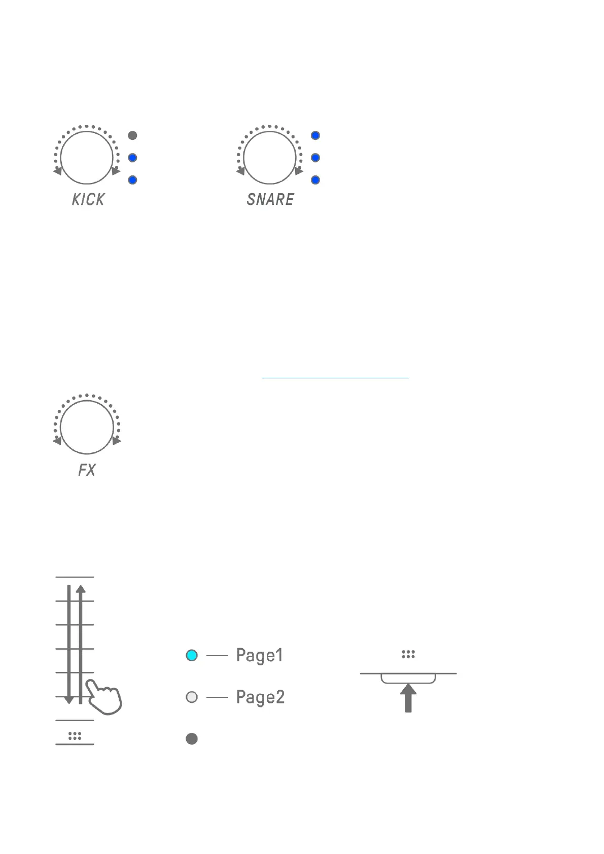 Turn the Track knobs to adjust the sound parameters for each track. The LED lamps on the