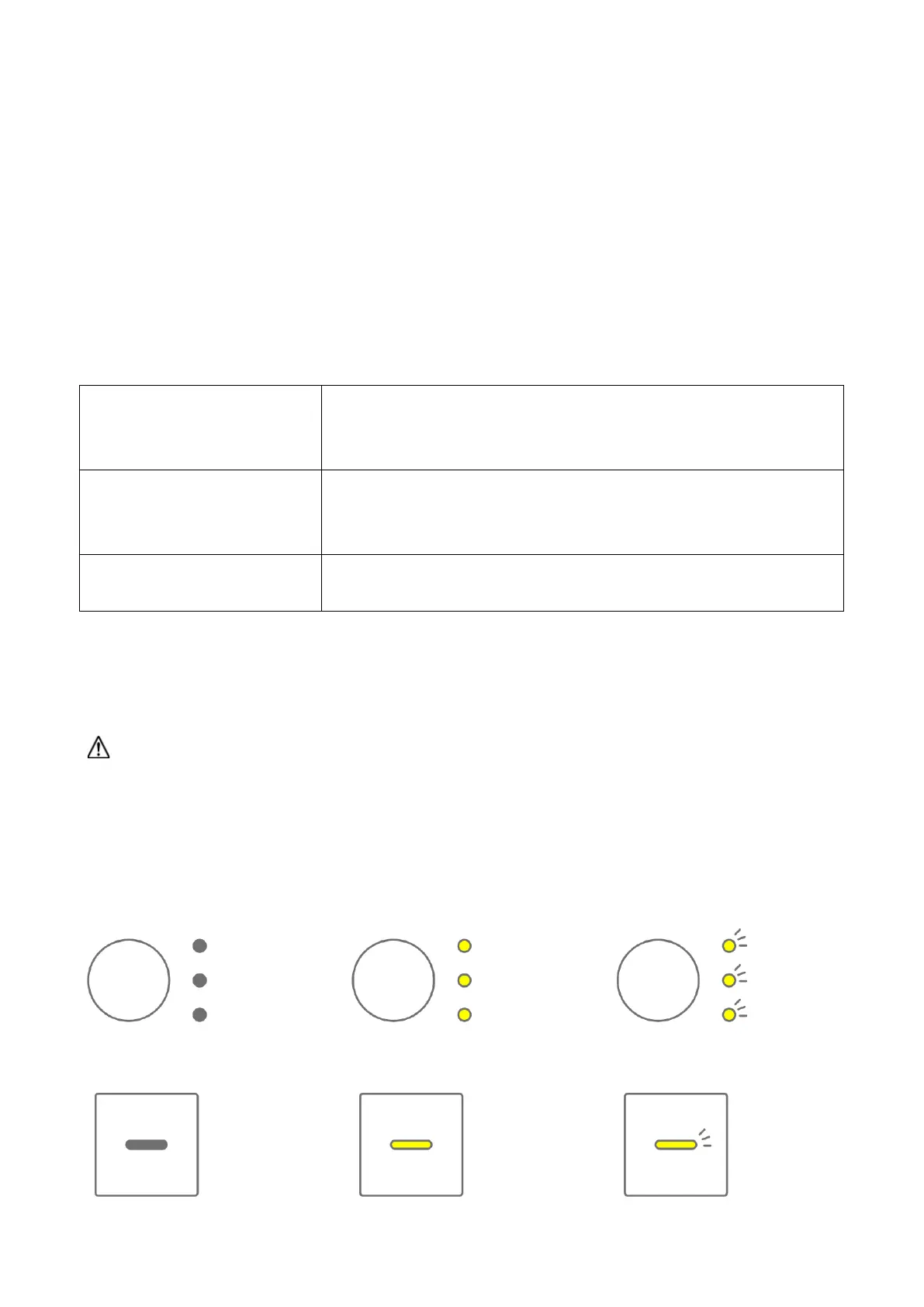 The various states of the LEDs (off, on, and flashing) are indicated as shown below.