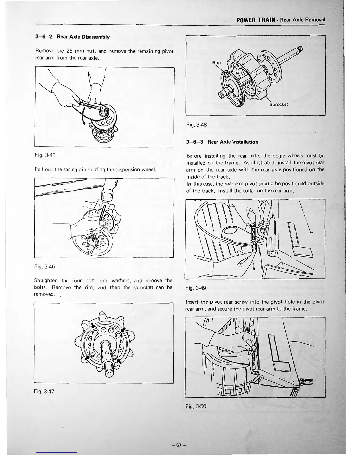 Before installing the rear axle, the bogie wheels must be