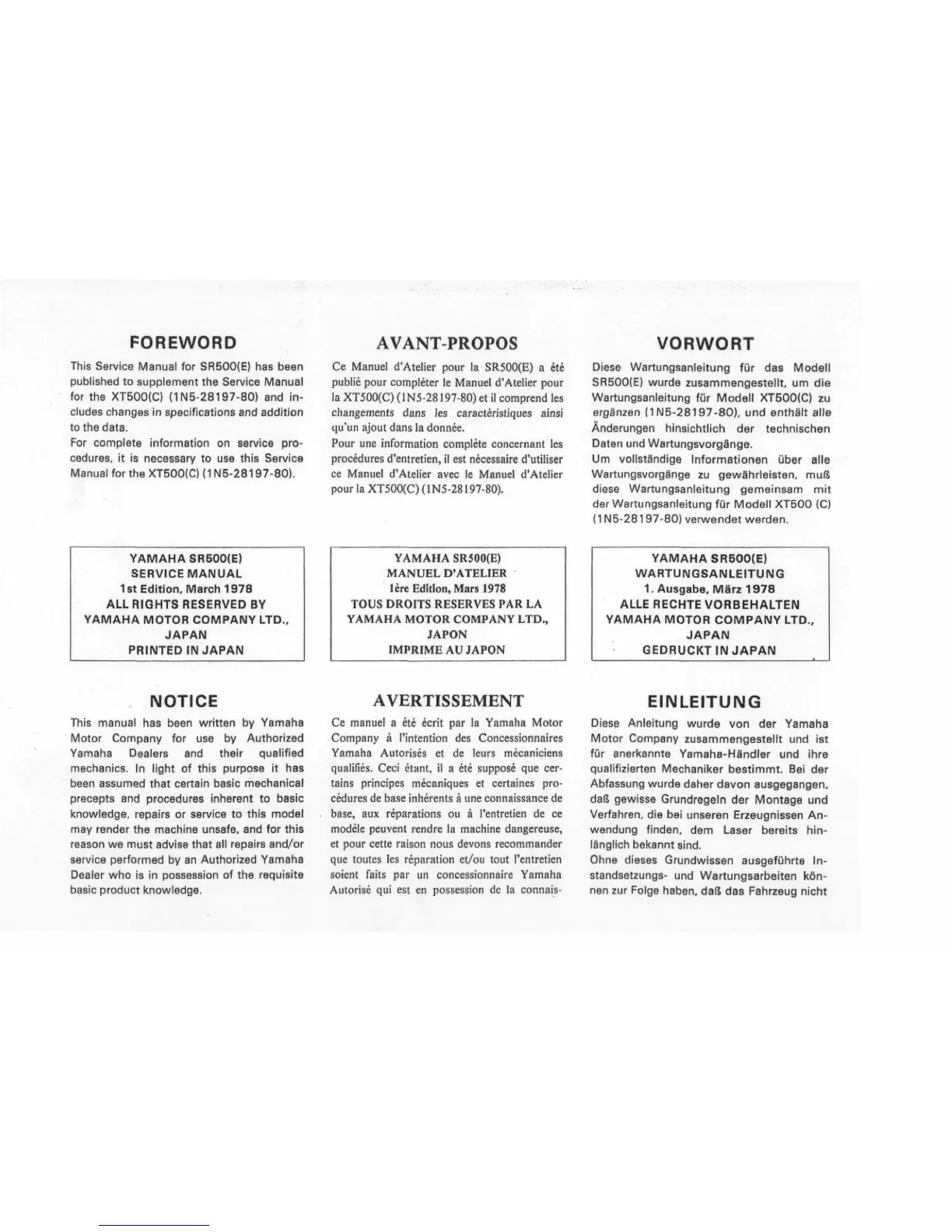 This Service Manual for SR500(E)