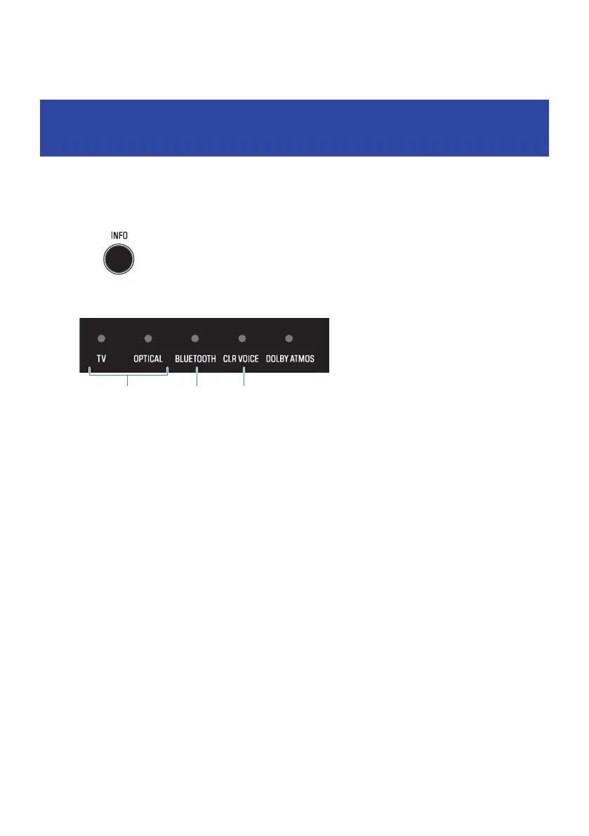The type of audio signal being played and settings for the sound bar’s functions can be checked.