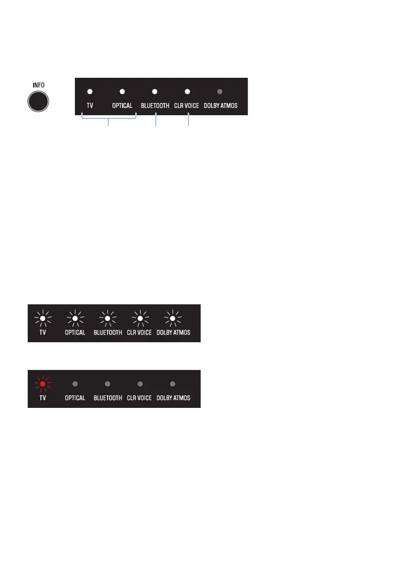 The indicators on the sound bar will show the following information on the type of audio signal and the