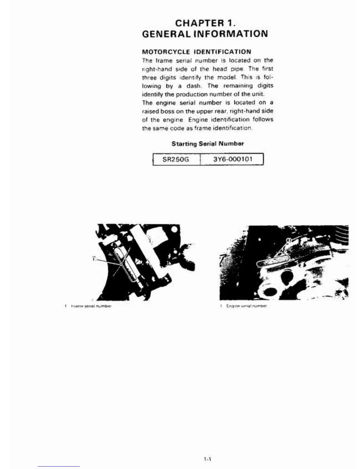 Yamaha SR250 - Yamaha SR250 Repair Manual - General Information; Motorcycle Identification