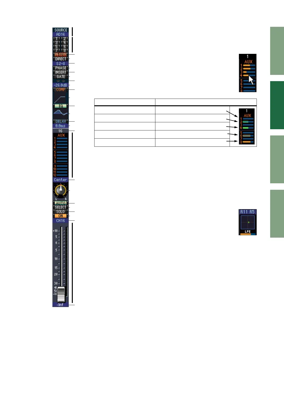 on the Aux Send On/Off and Pre/Post settings. Aux Sends can be set to