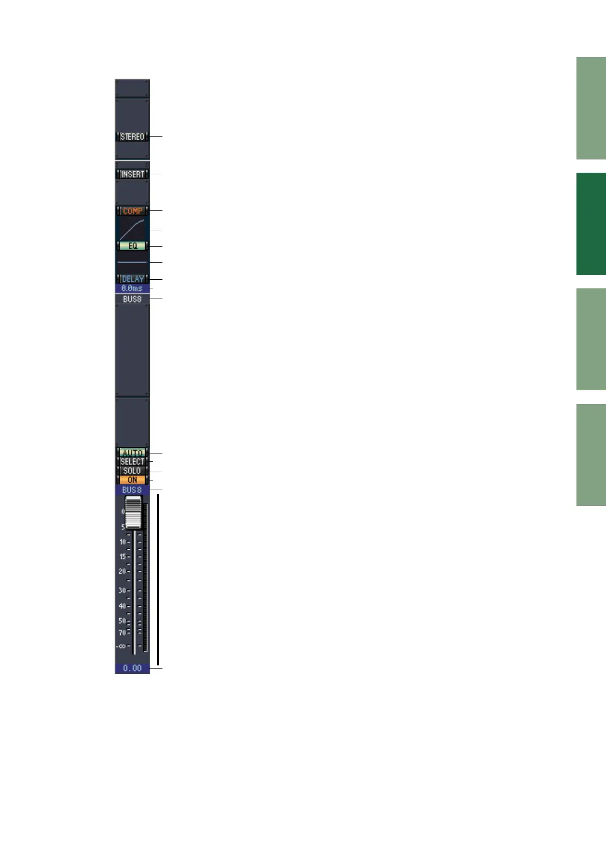 This button is used to turn on and off the Bus Out’s Delay function.
