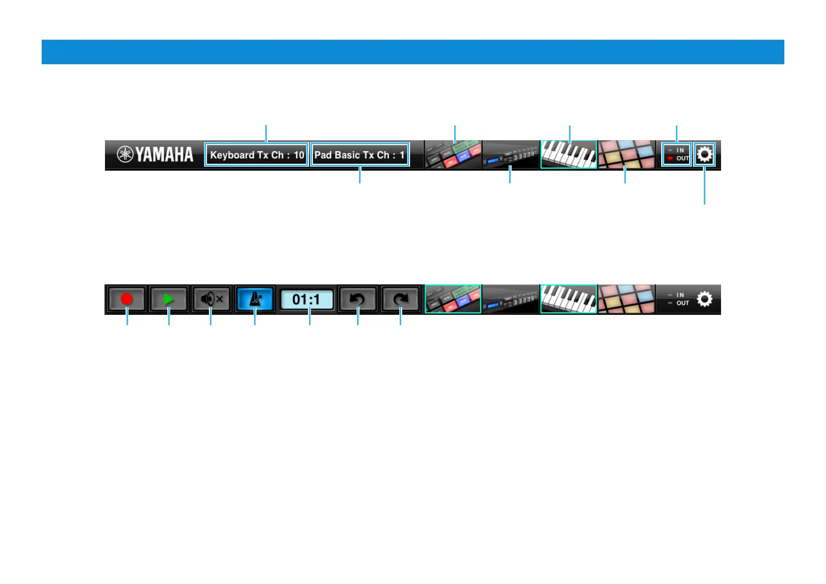 Records your performance in the Keyboard display and the Pad display, or plays back the recorded data.