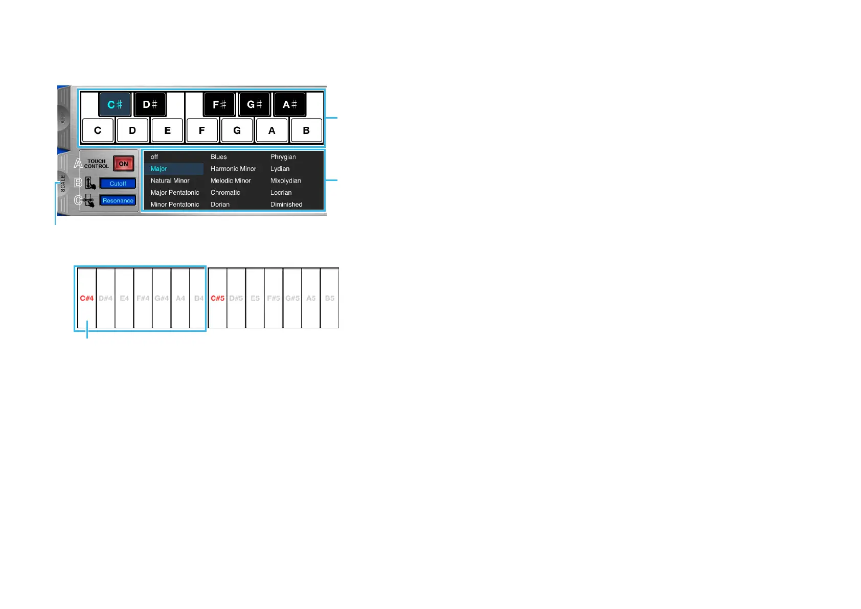 The Keyboard indication differs depending on the selected Scale