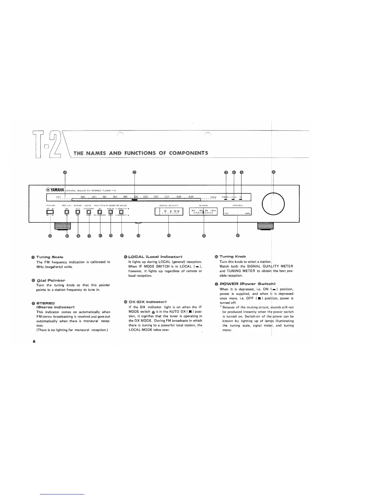 Yamaha T-2 - THE NAMES AND FUNCTIONS OF COMPONENTS