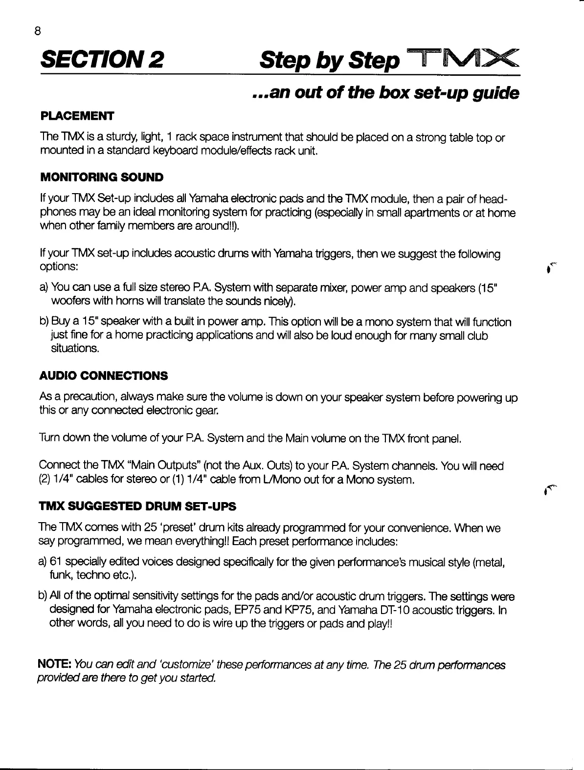 Yamaha TMX - Step-by-Step Setup Guide; Suggested Drum Set-Ups