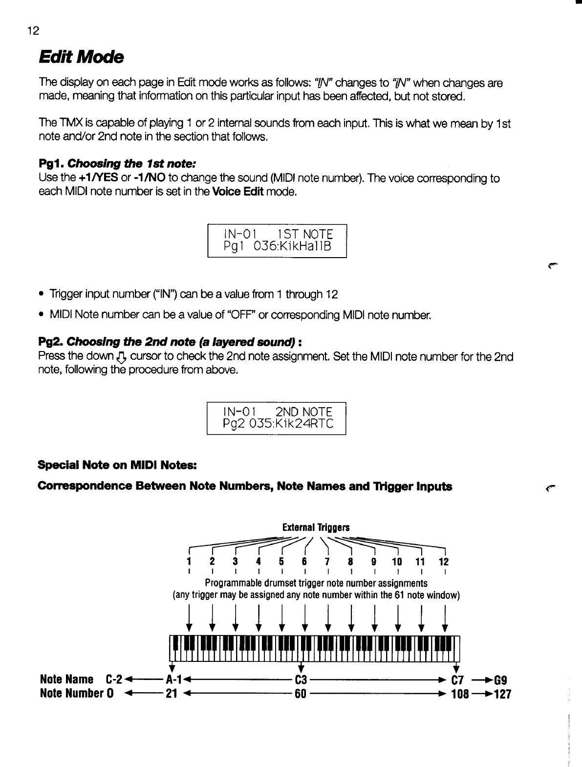 Yamaha TMX - Edit Mode: Input and Trigger Settings; Choosing Notes and Trigger Type
