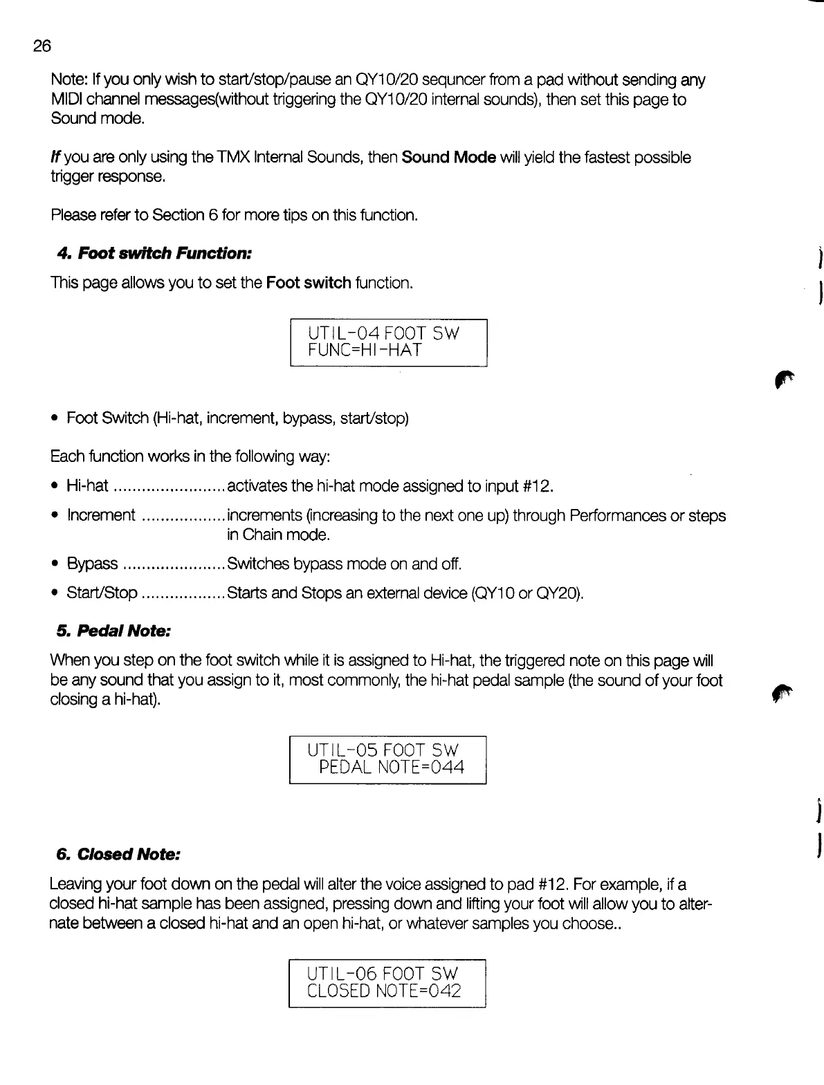 Yamaha TMX - Foot Switch Function; Pedal Note; Closed Note