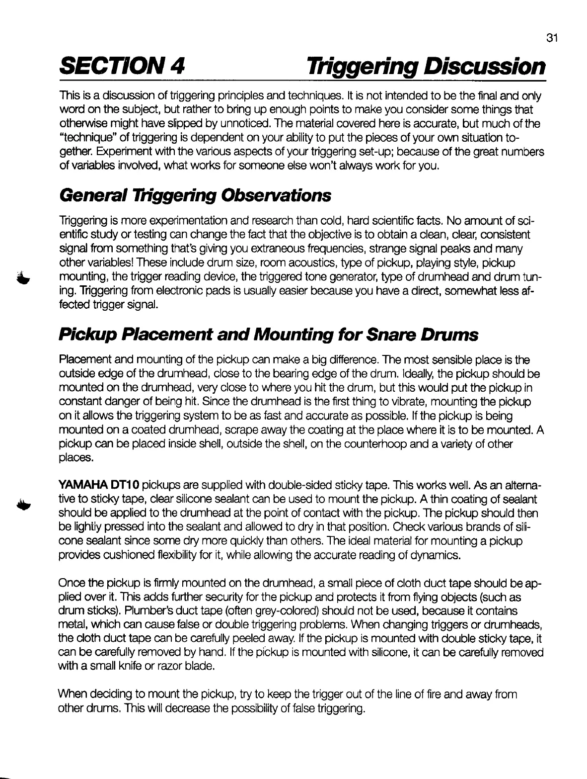 Yamaha TMX - Triggering Discussion; General Triggering Observations; Pickup Placement and Mounting for Snare Drums