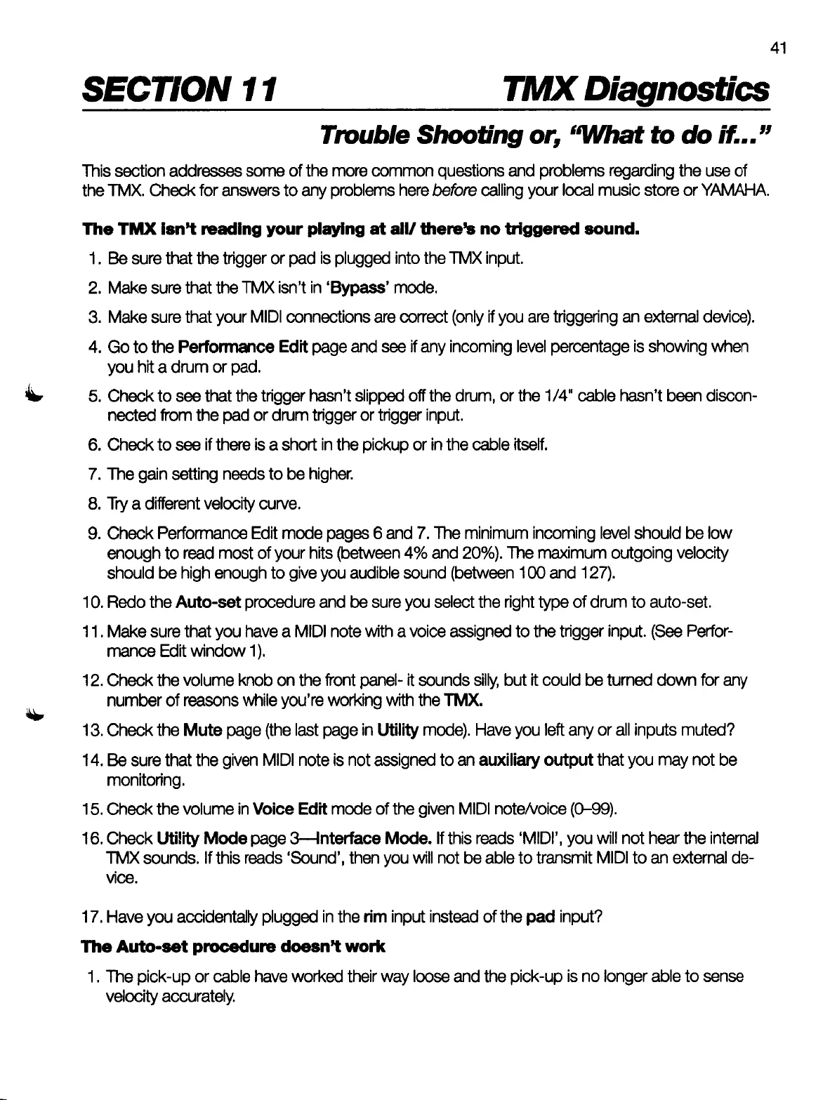 Yamaha TMX - Troubleshooting: Trigger Performance Issues