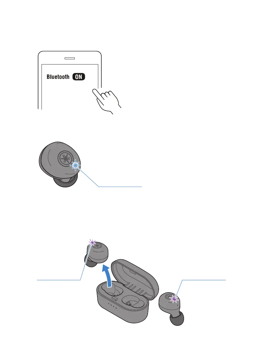 Once connected, the indicator on earphone (R) lights up as shown below. You will hear the