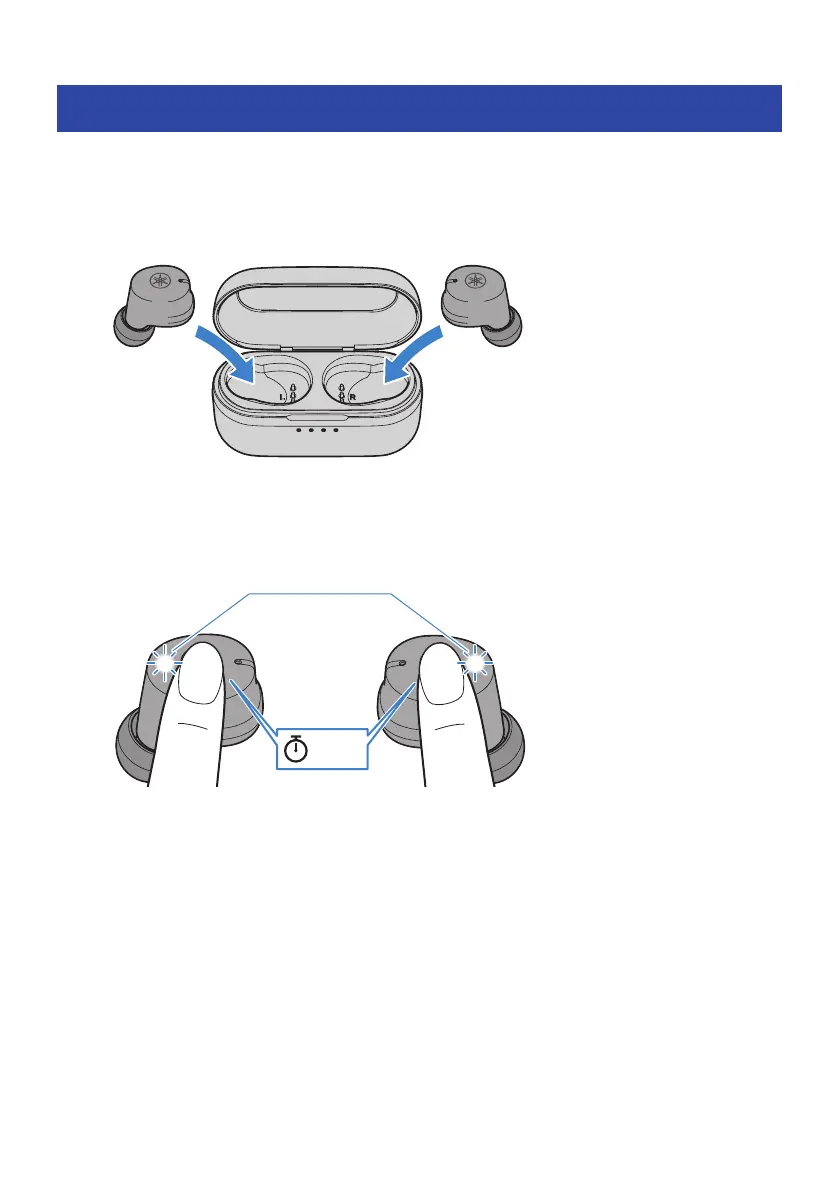 earbuds (L) and (R) for around seven seconds. The “Power Off” audio message plays in the earbuds, and the indicators will