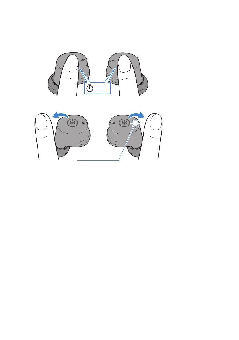 3 With earbuds (L) and (R) turned on, long-tap the Touch Control on earbud (L) and