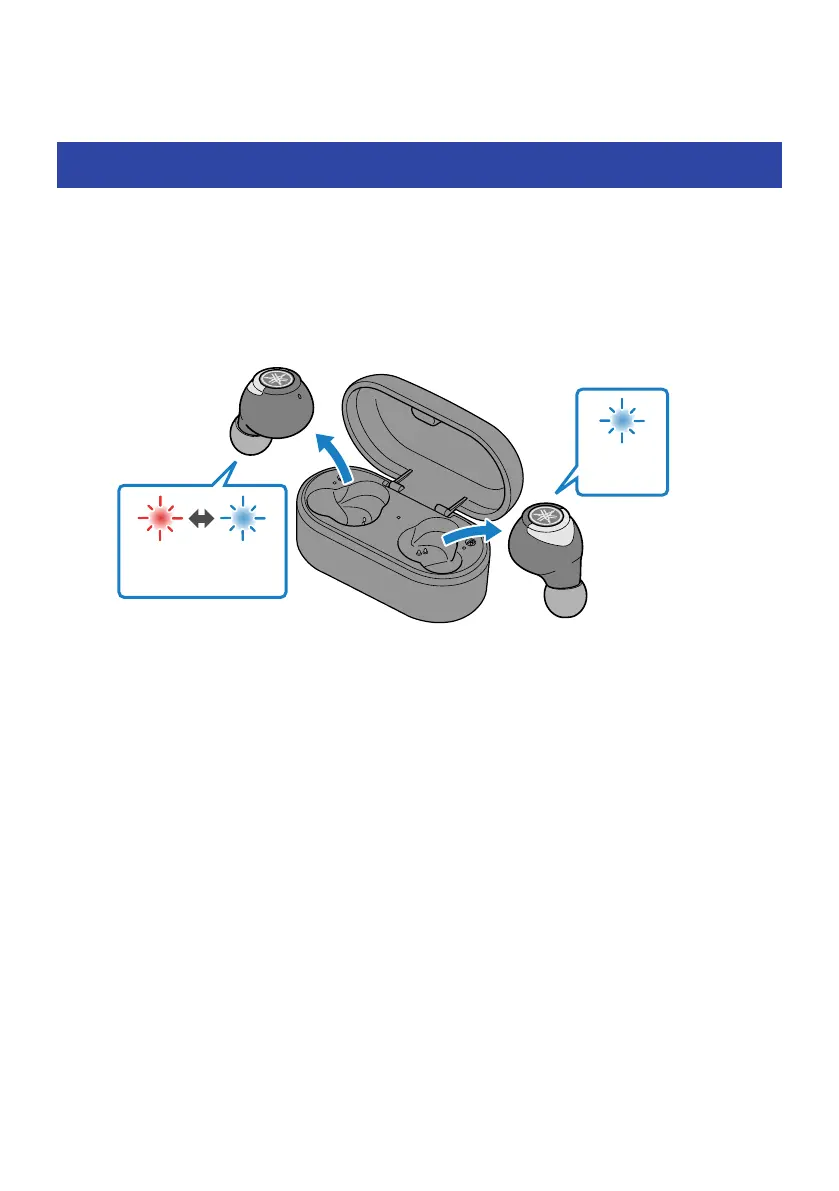 First, remove the earphone (L) and wait until the LEDs are lit as shown in the illustration